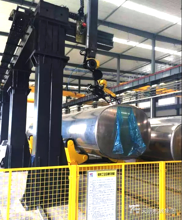 天明特种车辆项目按照智能制造设计产品工艺流程,积极推进互联网+制造的智能制造示范项目,引进了具有国内领先技术水平的工业机器人,以及自动化、数字化设备及工装,配套了全工艺流程的智能制造作业模式,生产线自动化程度超过80%,打造国内一流智能制造罐式车辆生产流水线,达到国际行业一流的智能化、专业化装备制造水平。